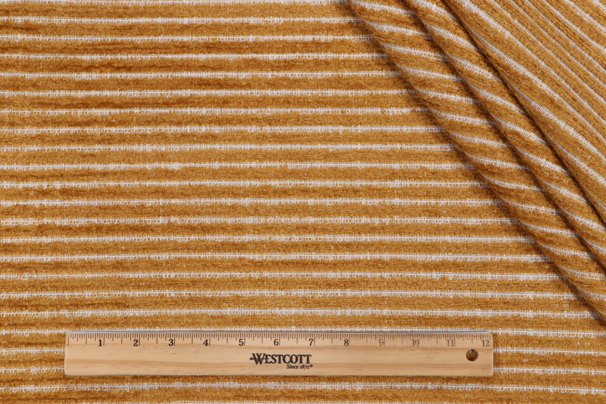 Stripe Woven Chenille Upholstery Fabric in Gold is a remnant, which is sold as a whole piece.