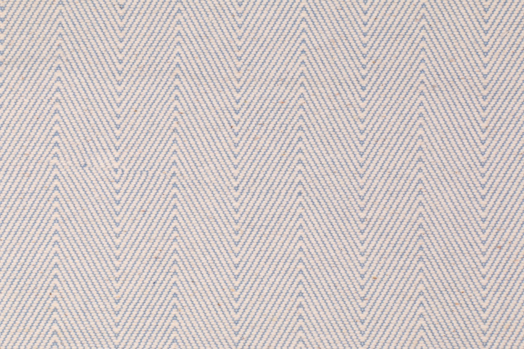 2.3 Yards Chevron Upholstery Fabric in Blue/Beige. This high end woven upholstery weight fabric is suited for uses requiring a more durable designer fabric. Uses include any upholstery project, sofas, chairs, dining chairs, pillows, certain types of window treatments, handbags and craft projects.