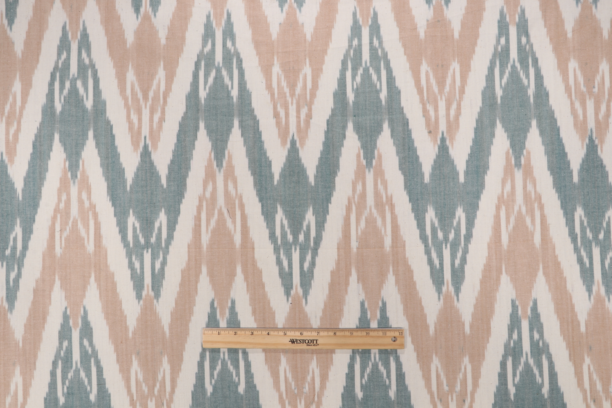 Laura & Kiran Ikat Woven Decorator Fabric in Aqua/Tan Details