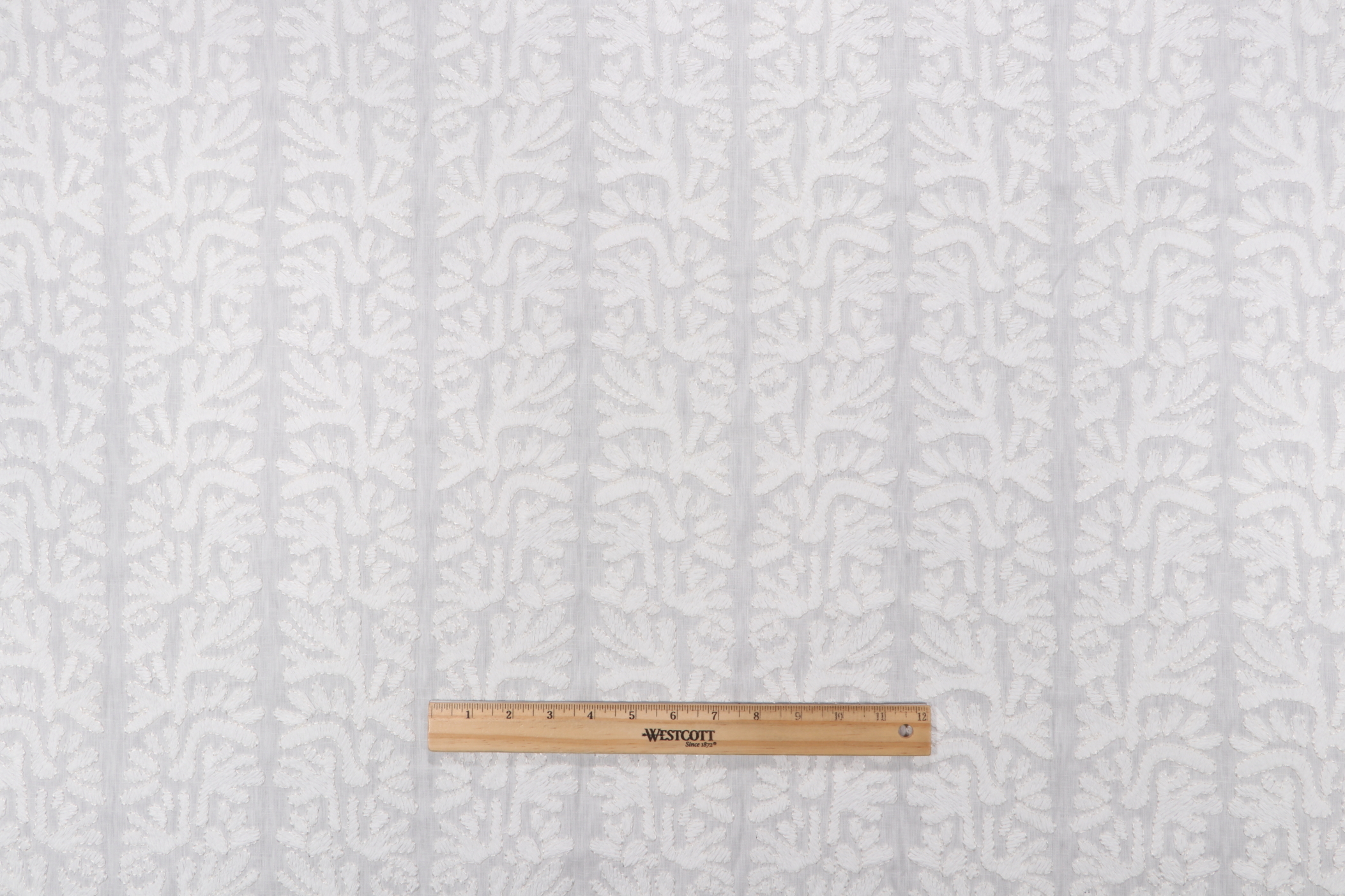 If you order a sample of PK Lifestyles Coral Embroidered Drapery Fabric in Coconut the size of the swatch you receive will be approximately 4" x 6". This is enough fabric to verify color and texture, but may not be large enough to capture an entire pattern.