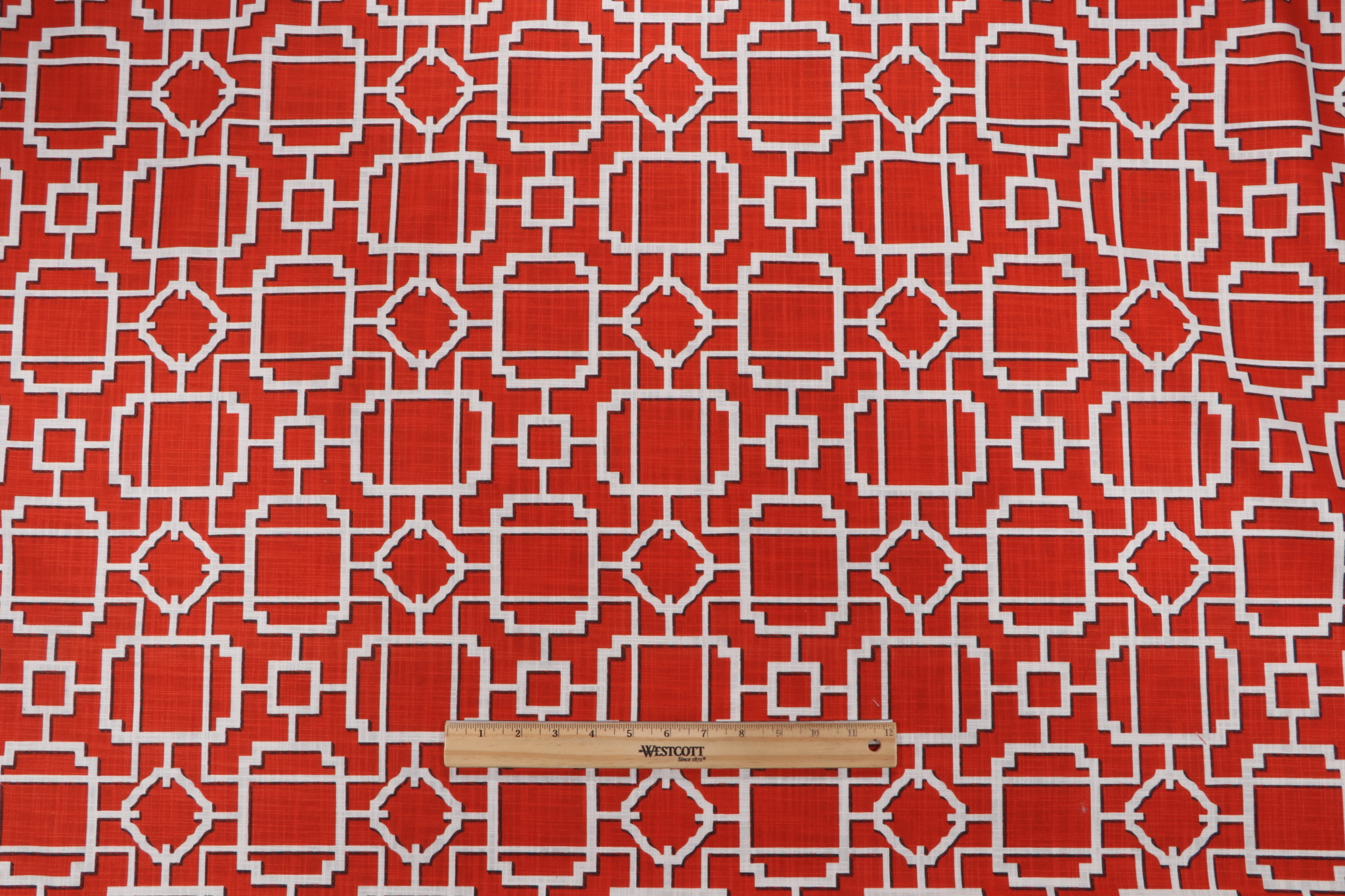 Covington Makura Printed Cotton Drapery Fabric in 318-Persimmon is a remnant, which is sold as a whole piece.