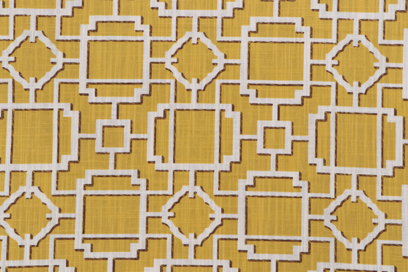 Covington Makura Printed Cotton Drapery Fabric in 805-Curry is a remnant, which is sold as a whole piece.