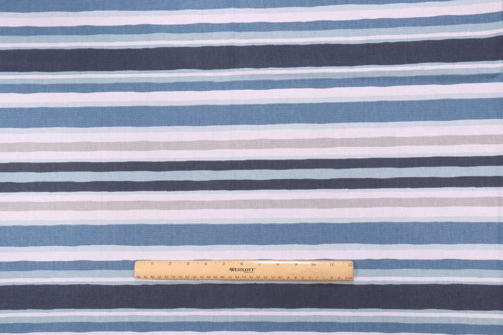 Covington Unique Stripe Printed Cotton Drapery Fabric in 593-Indigo is a remnant, which is sold as a whole piece.