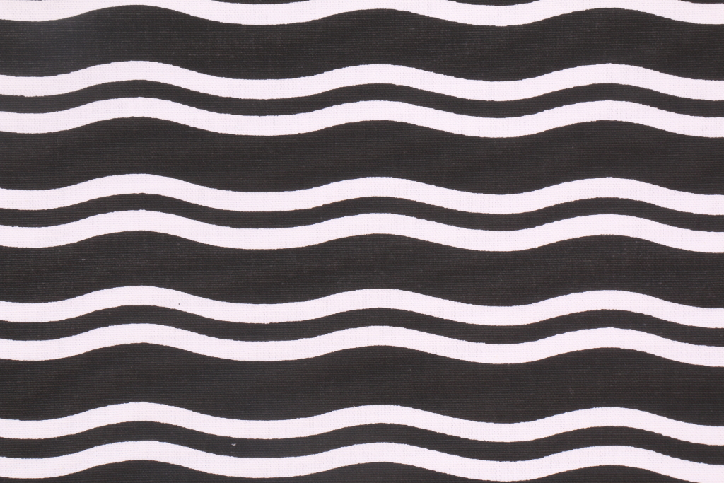 Designer Wavy Horizontal Stripe Printed Cotton Drapery Fabric in Black. This printed fabric is perfect for window treatments, decorative pillows, handbags, light duty upholstery applications and almost any craft project. This fabric has a soft workable feel yet is stable and durable.