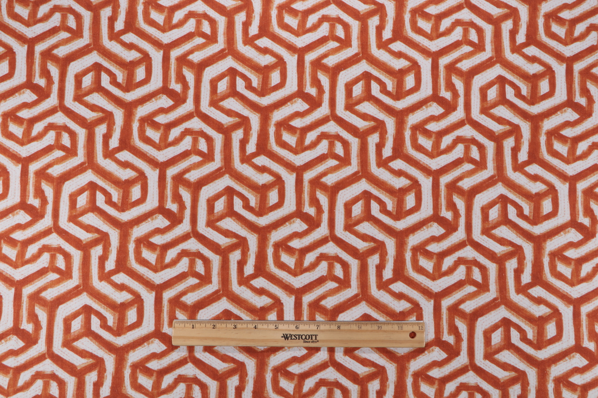 1 Yards Jill Stein Granville Printed Cotton Drapery Fabric in Persimmon for Hamilton Details