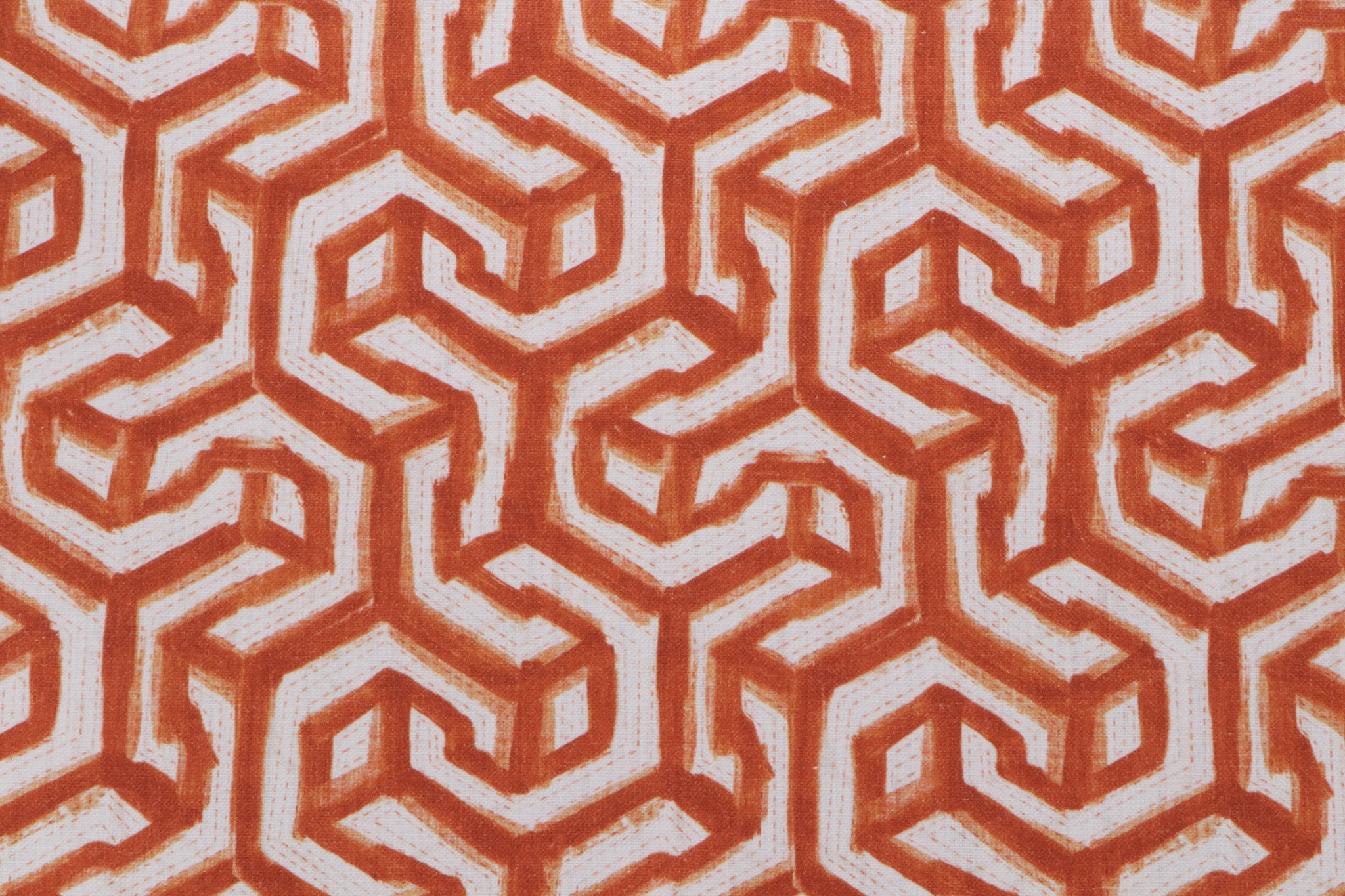 Jill Stein Granville Printed Cotton Drapery Fabric in Persimmon for Hamilton is a remnant, which is sold as a whole piece.