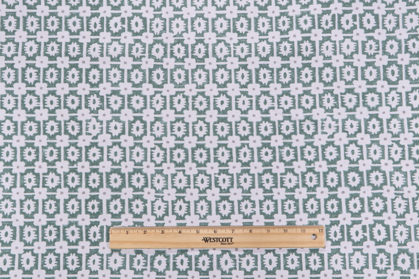 P Kaufmann Sorrel Printed Cotton Drapery Fabric in Spruce is a remnant, which is sold as a whole piece.