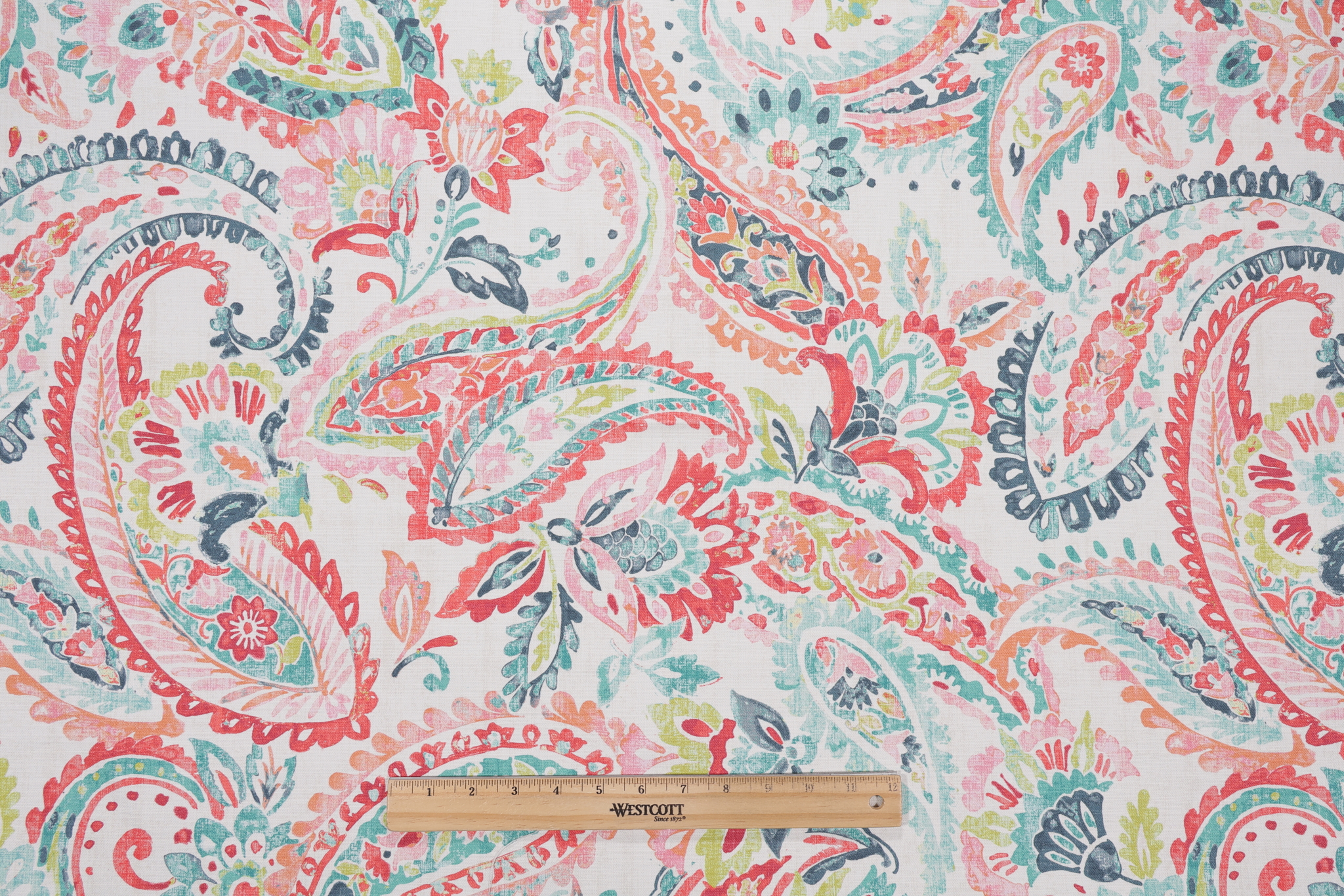 .88 Yards Paisley Printed Cotton Drapery Fabric in Fruit Punch Details