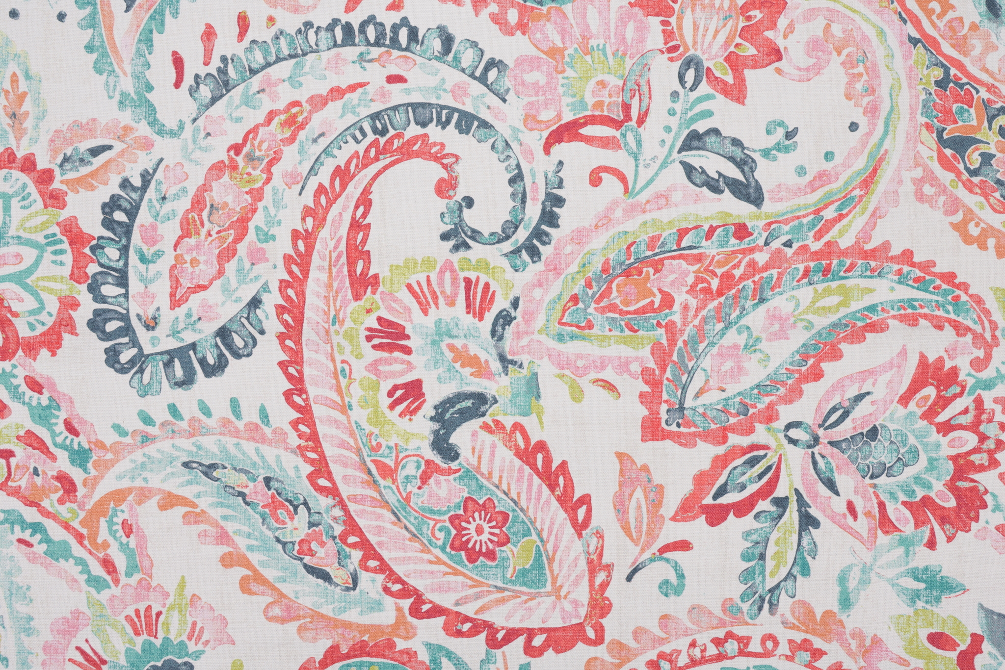 Paisley Printed Cotton Drapery Fabric in Fruit Punch is a remnant, which is sold as a whole piece.