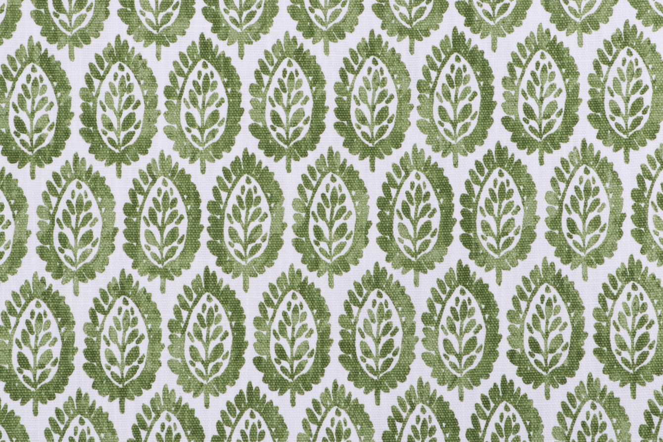1.13 Yards Premier Prints Lynn-Slub Linen White Printed Drapery Fabric in Kale Details