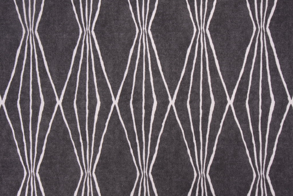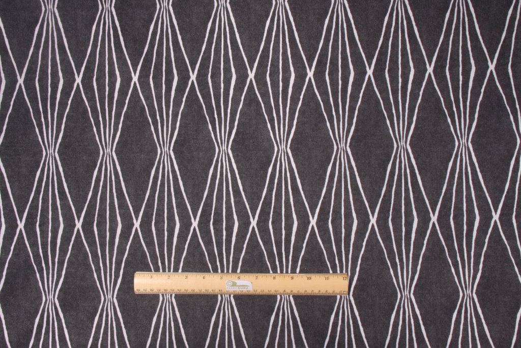 Robert Allen Handcut Shapes Printed Cotton Drapery Fabric in Charcoal is a remnant, which is sold as a whole piece.