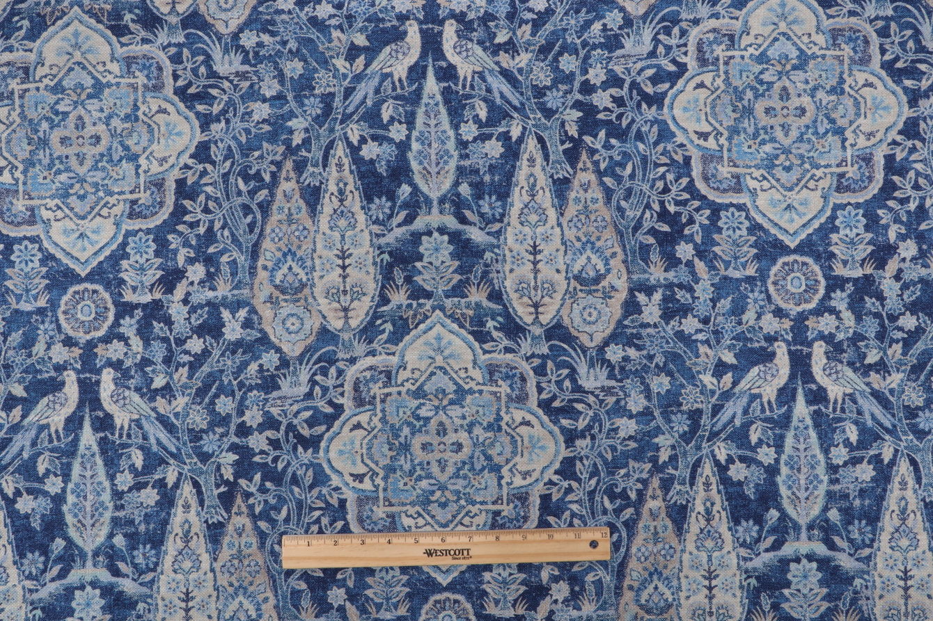 PK Lifestyles Wanderer Printed Cotton Blend Drapery Fabric in Copen Details
