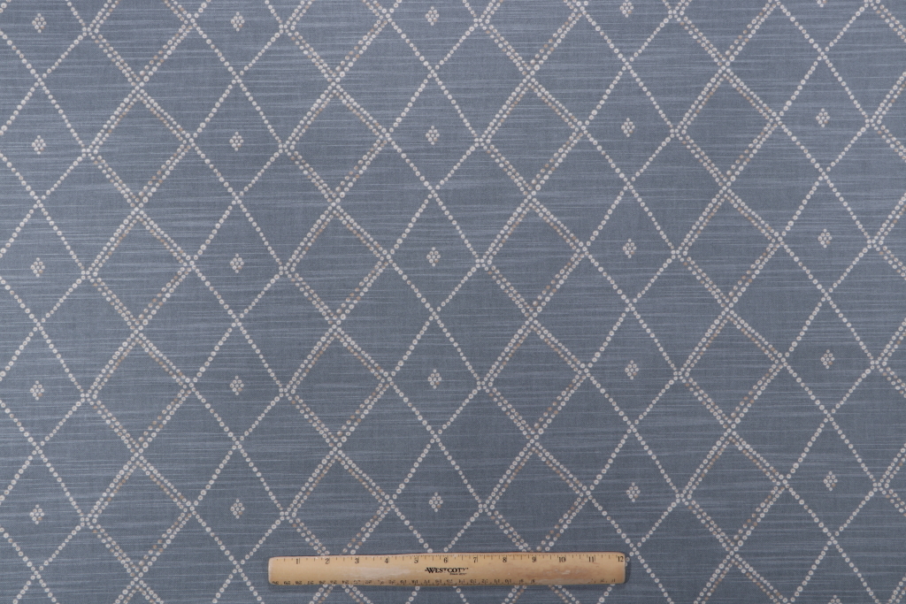 Blackburn Printed Cotton Drapery Fabric in Slate is a remnant. Fabric remnants refer to leftover pieces of fabric from production runs at manufacturing sites or pieces that remain from by the yard stock. The lengths of these remnants can vary from a few inches to several yards and are typically sold at a reduced price, since they represent remaining inventory.