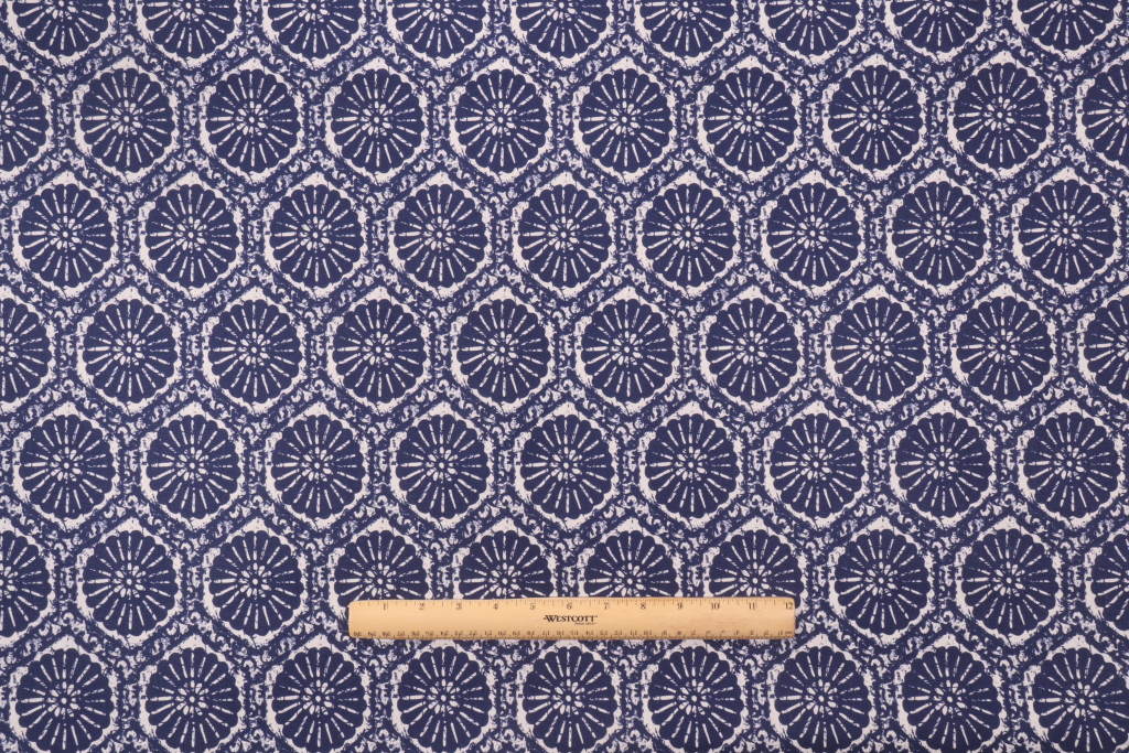 Covington Sea Breeze Printed Cotton Drapery Fabric in 593-Indigo is a remnant, which is sold as a whole piece.