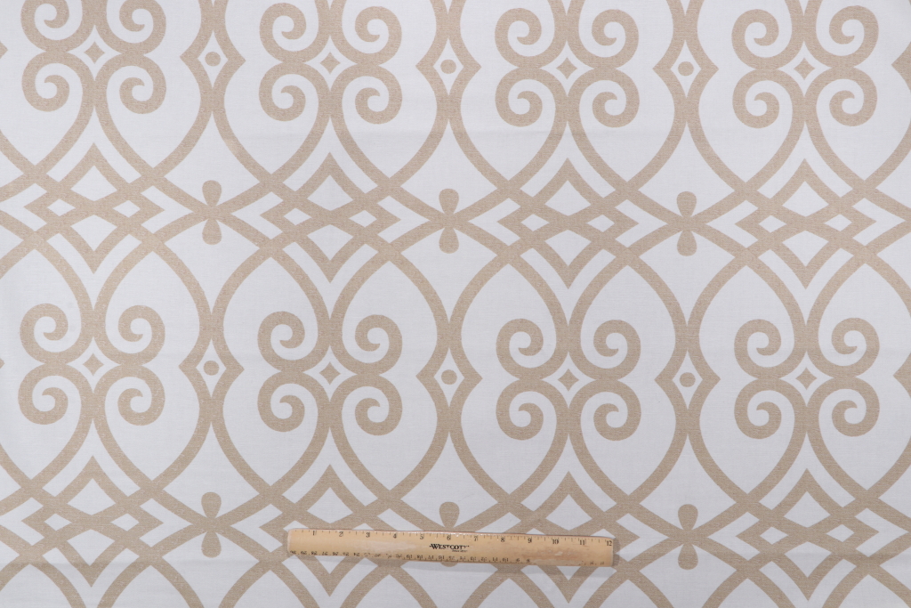 1.63 Yards Jaclyn Smith Gatework Printed Cotton Drapery Fabric in Cashew for Trend Details