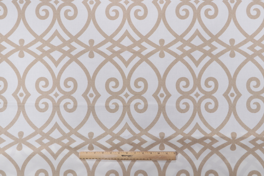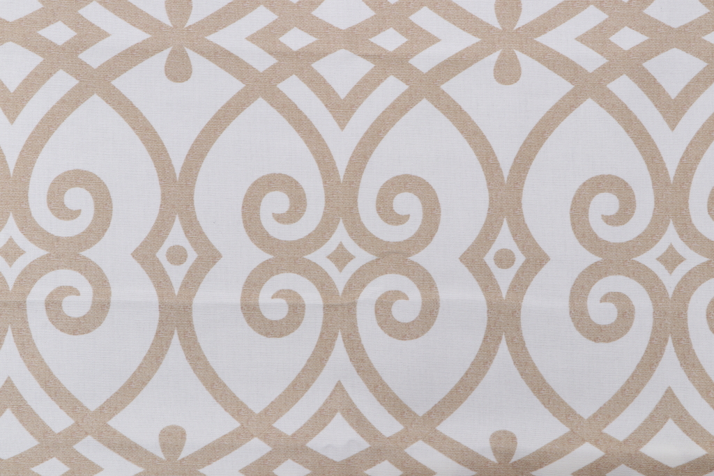 Jaclyn Smith Home Gatework Printed Cotton Drapery Fabric in Cashew for Trend is a remnant, which is sold as a whole piece.