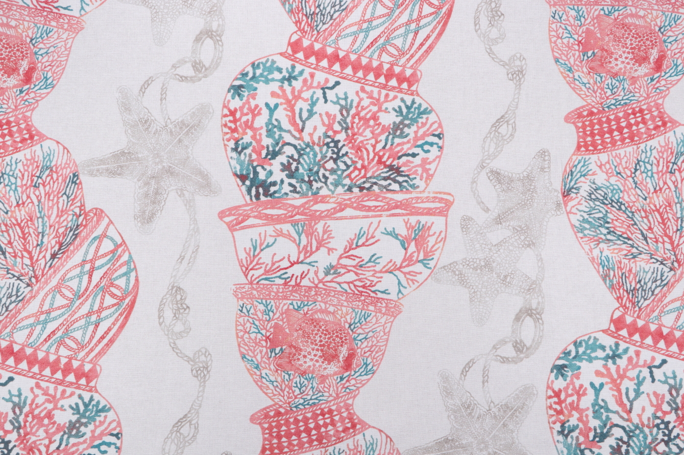 P Kaufmann Cote D'Azur Printed Cotton Drapery Fabric in Coral is a remnant, which is sold as a whole piece.