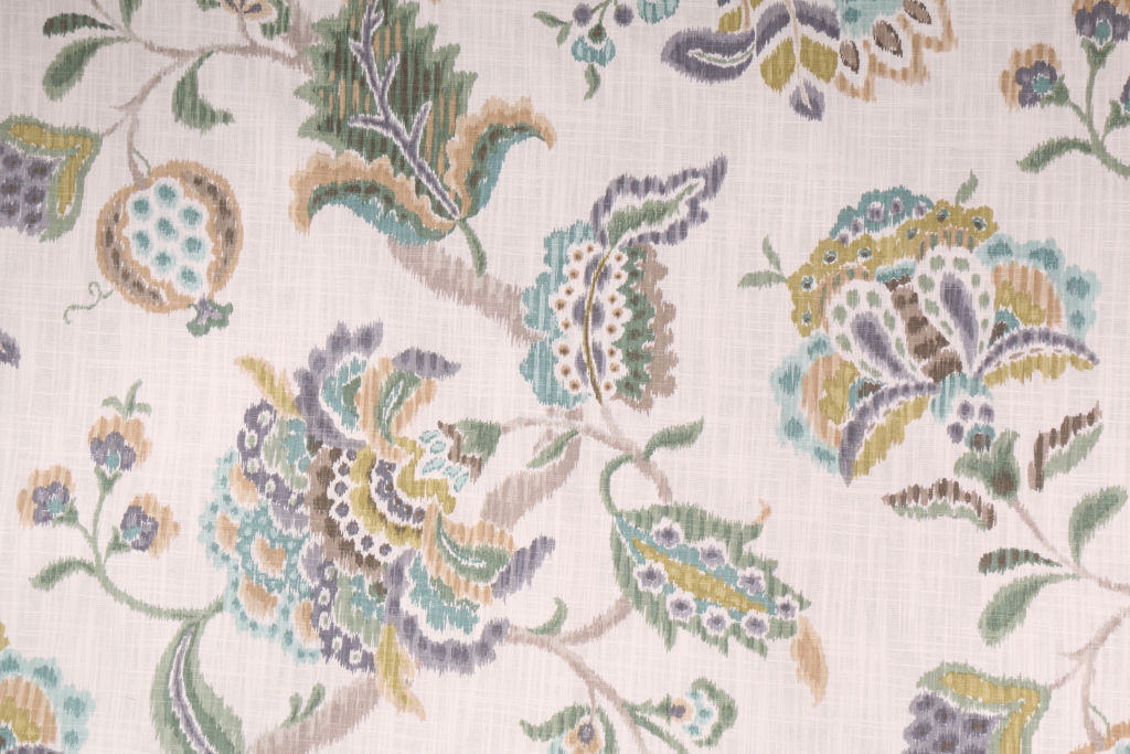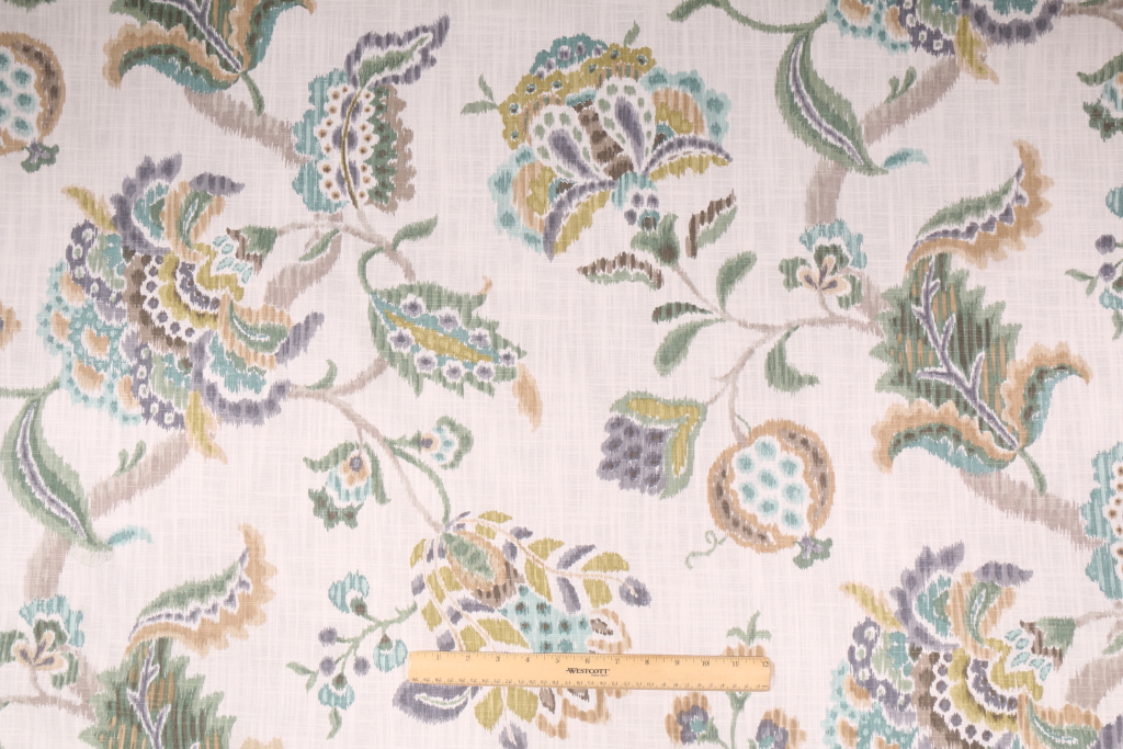 2.88 Yards P Kaufmann Flourish Printed Cotton Drapery Fabric in Lagoon Blue Details