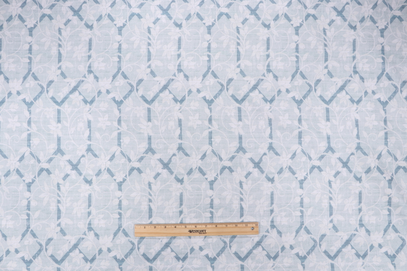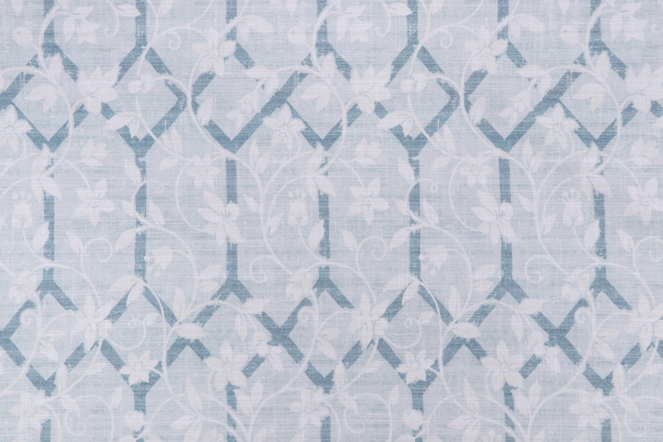 P Kaufmann Garden Lattice Printed Cotton Drapery Fabric in Sky Details