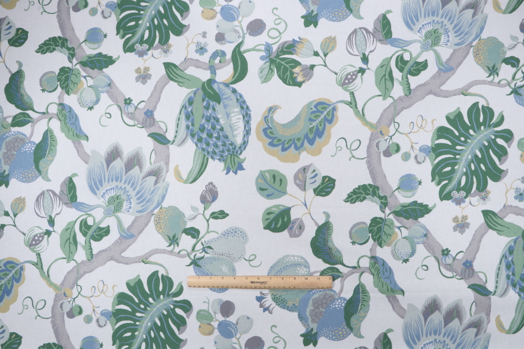 P Kaufmann Harmony Printed Cotton Drapery Fabric in Lagoon is a remnant, which is sold as a whole piece.