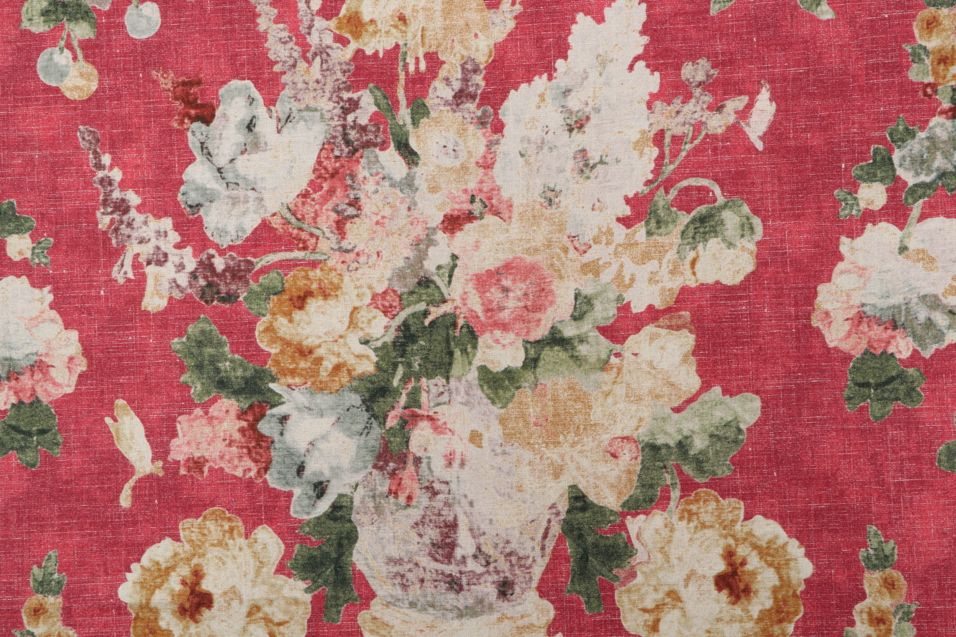 P Kaufmann Picturesque Printed Cotton Drapery Fabric in Crimson is a remnant, which is sold as a whole piece.