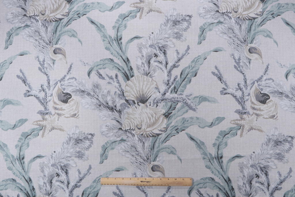 2 Yards P Kaufmann Tarramar Printed Cotton Twill Drapery Fabric in Seaglass Details