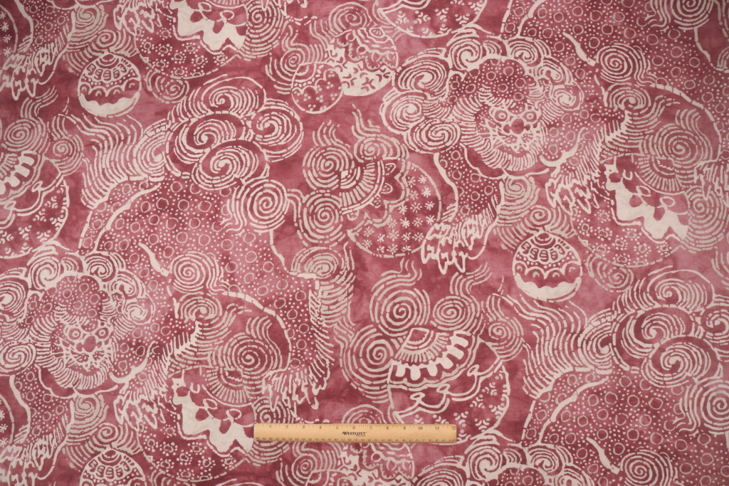P Kaufmann Temple Lion Printed Cotton Drapery Fabric in Claret is a remnant, which is sold as a whole piece.