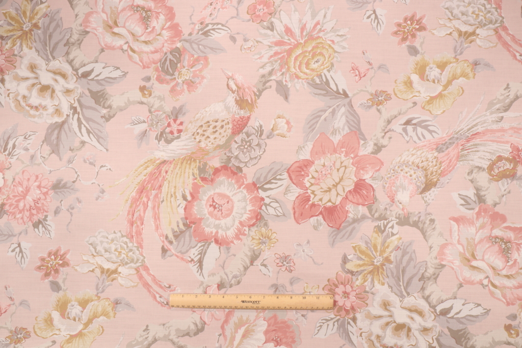 Kaufmann Valentina Printed Cotton Drapery Fabric in Blush. This printed fabric is perfect for window treatments, decorative pillows, handbags, light duty upholstery applications and almost any craft project. This fabric has a soft workable feel yet is stable and durable.