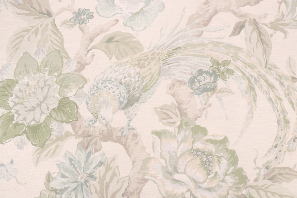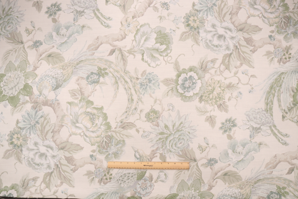 Kaufmann Valentina Printed Cotton Drapery Fabric in Foam. This printed fabric is perfect for window treatments, decorative pillows, handbags, light duty upholstery applications and almost any craft project. This fabric has a soft workable feel yet is stable and durable.