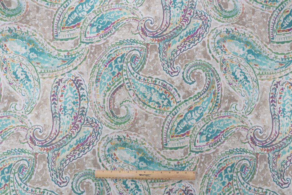 2.75 Yards Kelly Ripa Home Bright & Lively Printed Cotton Drapery Fabric in Seaglass Details