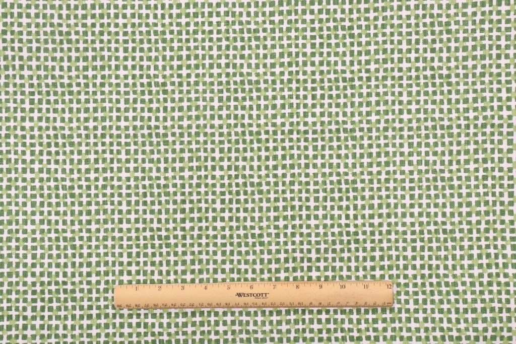 1.13 Yards Lacefield Cross-Chatham White Printed Cotton Blend Drapery Fabric in Emerald Details