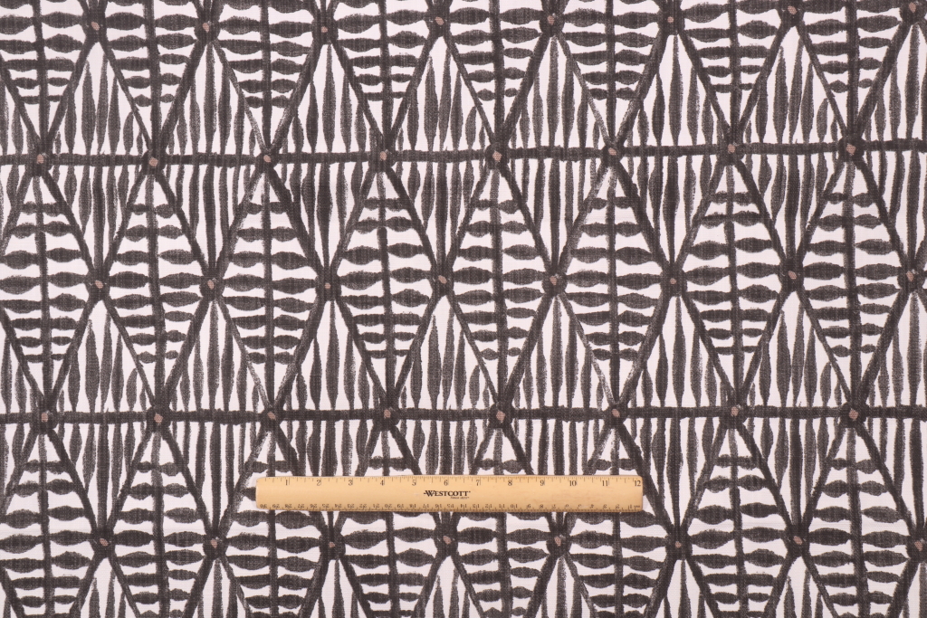 Lacefield Kona-Chatham White Printed Cotton Blend Drapery Fabric in Chromium is a remnant, which is sold as a whole piece.