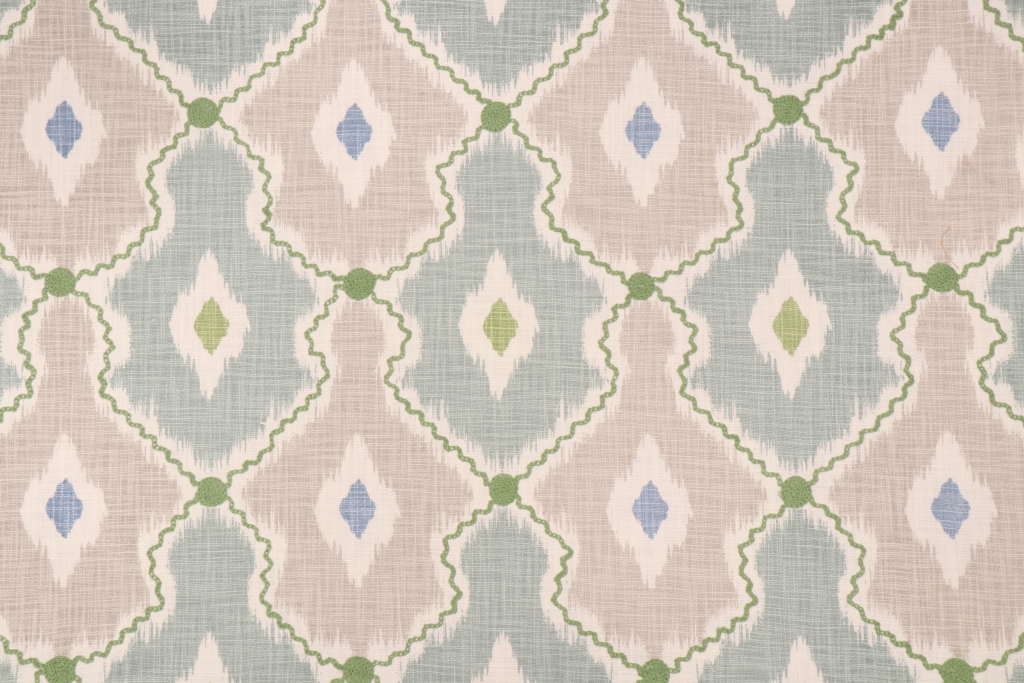1 Yards PK Lifestyles Ikat Stitchery Embroidered Printed Cotton Drapery Fabric in Mist Details