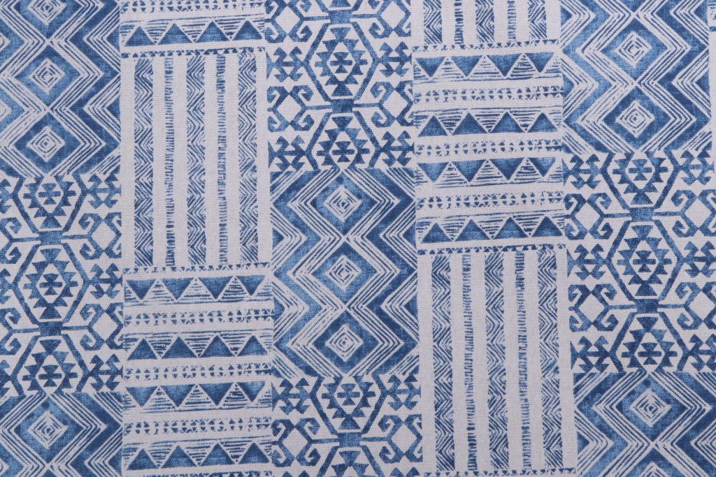 5.75 Yards Mill Creek Indrani Printed Cotton Drapery Fabric in Denim Details