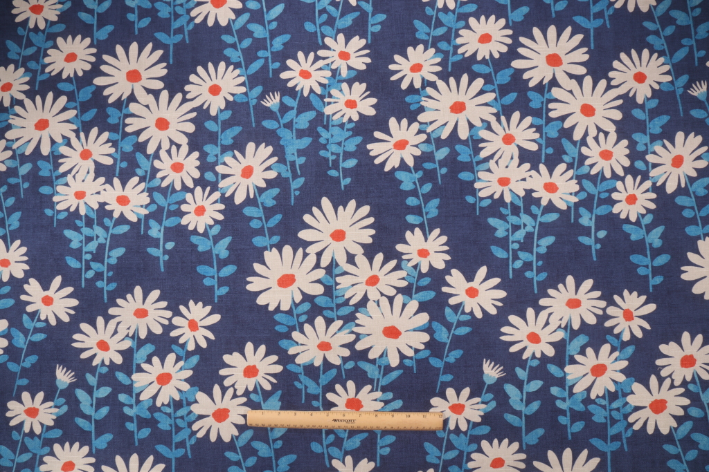 0.5 Yards Novogratz Endless Daisies Printed Cotton Drapery Fabric in Blue Mood Details