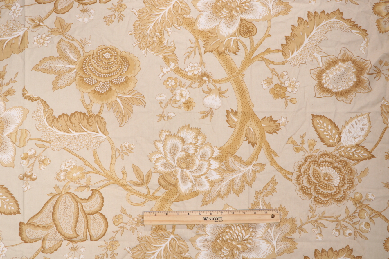 1.25 Yards Old World Weavers Seville On Buff Cotton Printed Cotton Drapery Fabric in Toffee on Ecru for Scalamandre Details