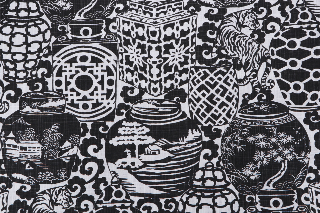 Premier Prints Sunda-Slub Canvas Printed Cotton Drapery Fabric in Raven Details
