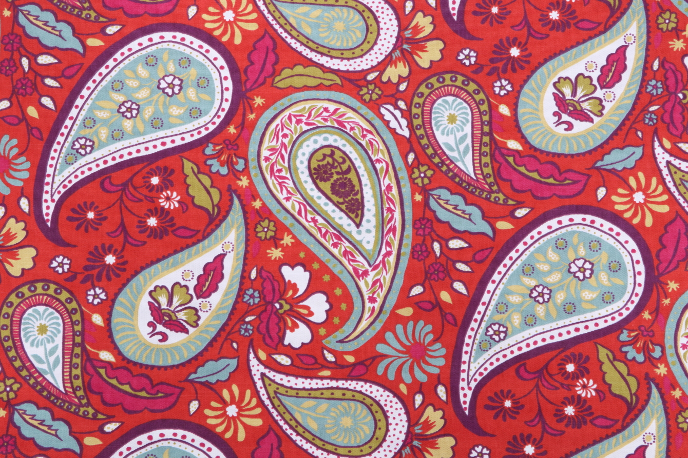 Robert Allen Art Paisley Printed Cotton Drapery Fabric in Poppy is a remnant, which is sold as a whole piece.