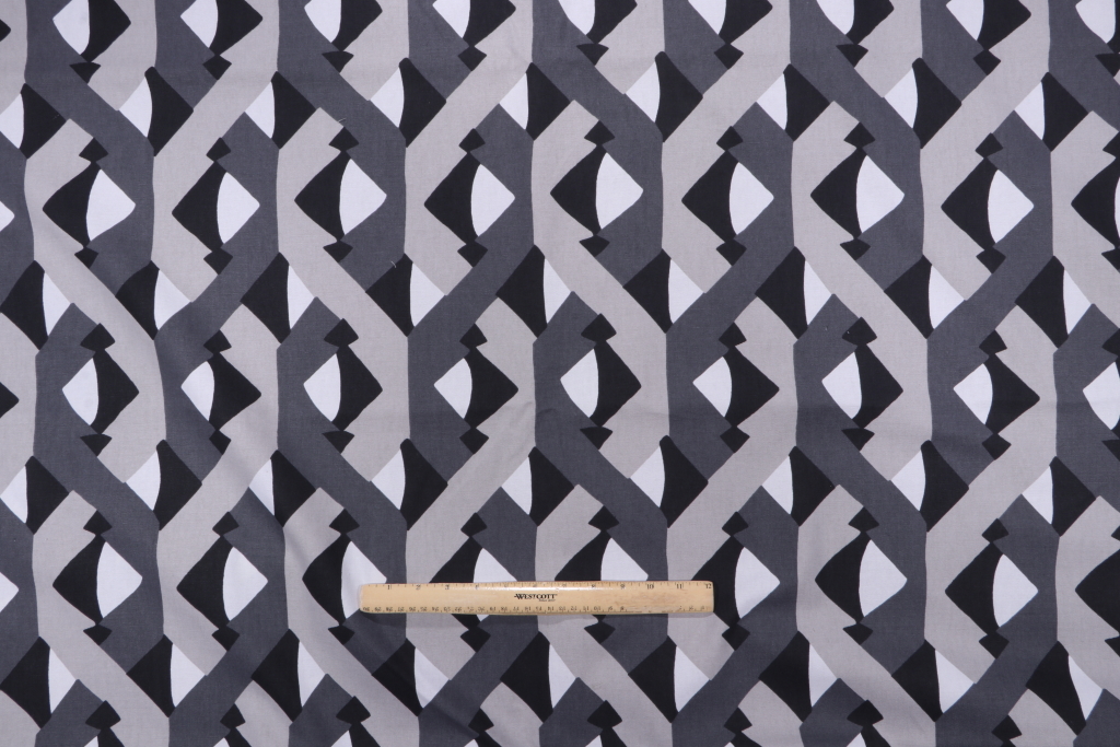Robert Allen Dover Street Printed Cotton Drapery Fabric in Graphite for Dwell Studios is a remnant, which is sold as a whole piece.