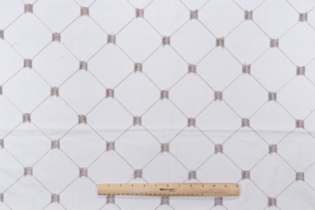 Robert Allen Embroidered Drapery Fabric in Flint is a remnant, which is sold as a whole piece.