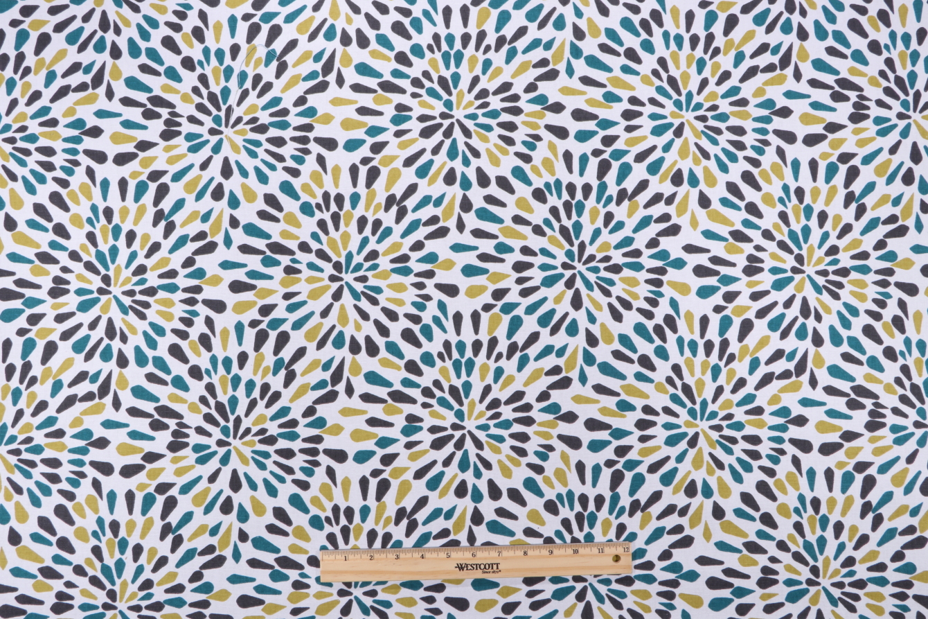 Robert Allen Many Petals Printed Cotton Drapery Fabric in Turquoise Details