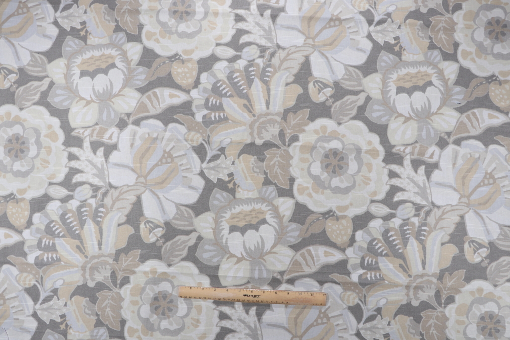 1 Yard Robert Allen Naive Floral Printed Cotton Drapery Fabric in Pewter Details