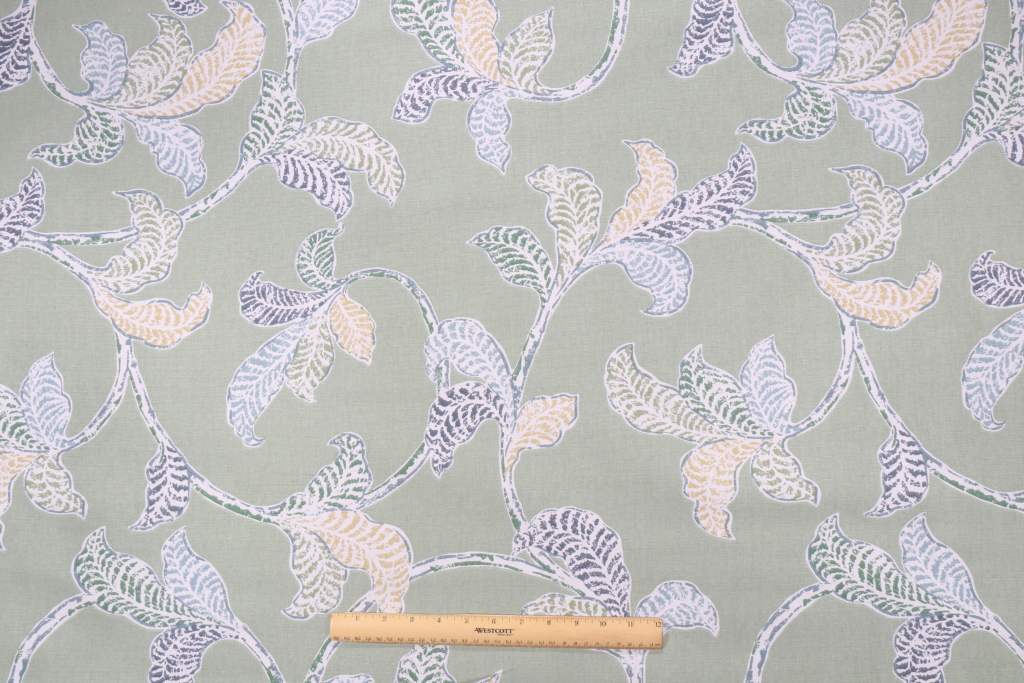 Robert Allen Rosemaling Printed Cotton Drapery Fabric in Grassland is a remnant, which is sold as a whole piece.