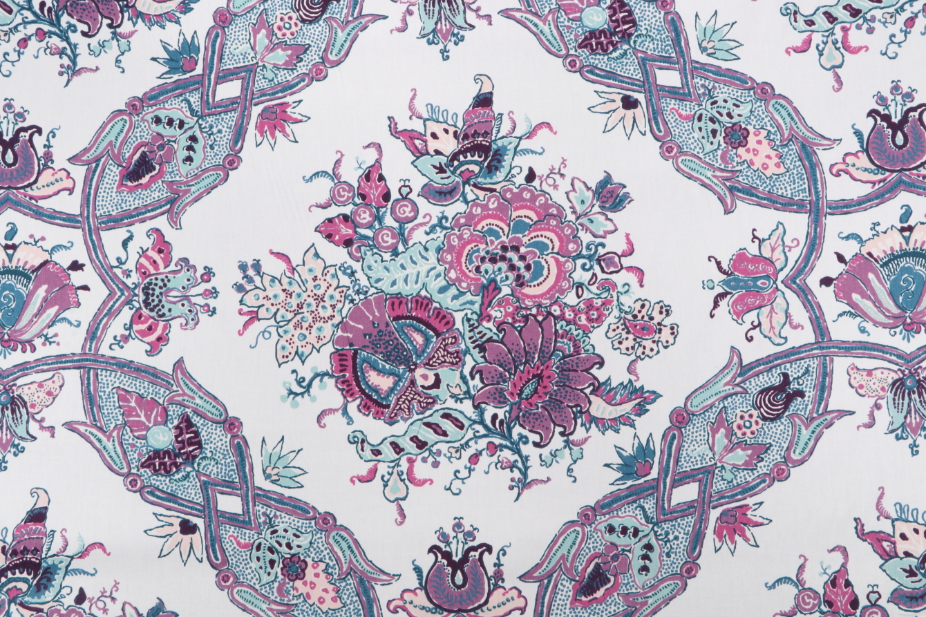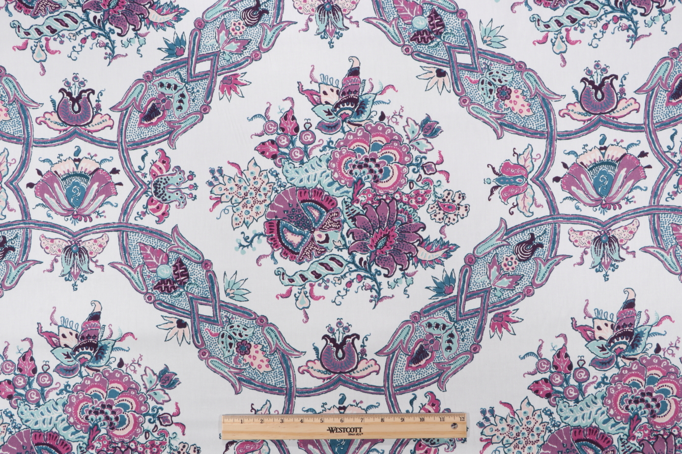 Robert Allen Sissy Printed Cotton Drapery Fabric in Purple Details