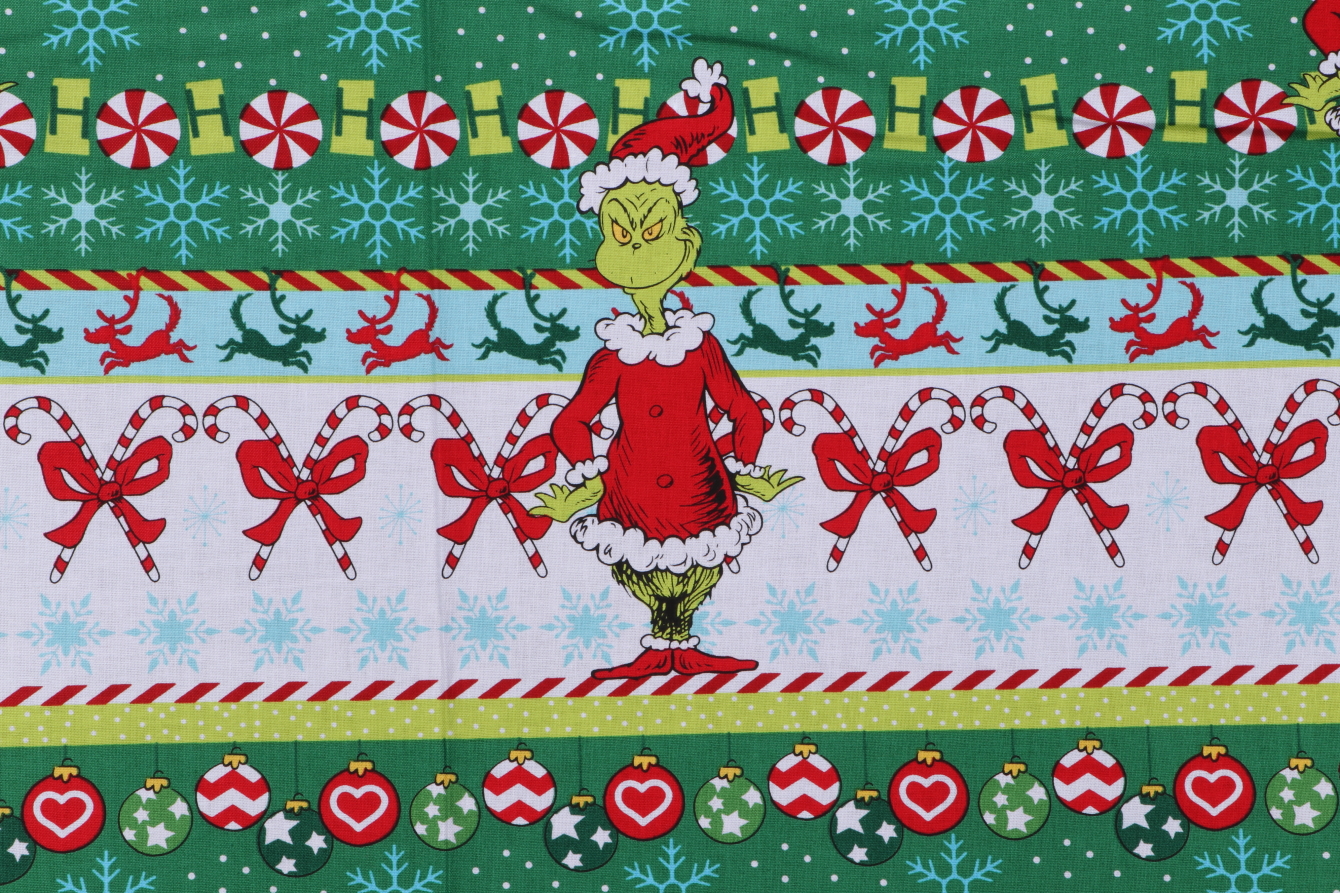 Robert Kaufman How The Grinch Stole Christmas Collection ADE-73330-1 Printed Cotton Craft Fabric in White is a remnant. Fabric remnants refer to leftover pieces of fabric from production runs at manufacturing sites or pieces that remain from by the yard stock. The lengths of these remnants can vary from a few inches to several yards and are typically sold at a reduced price, since they represent remaining inventory.