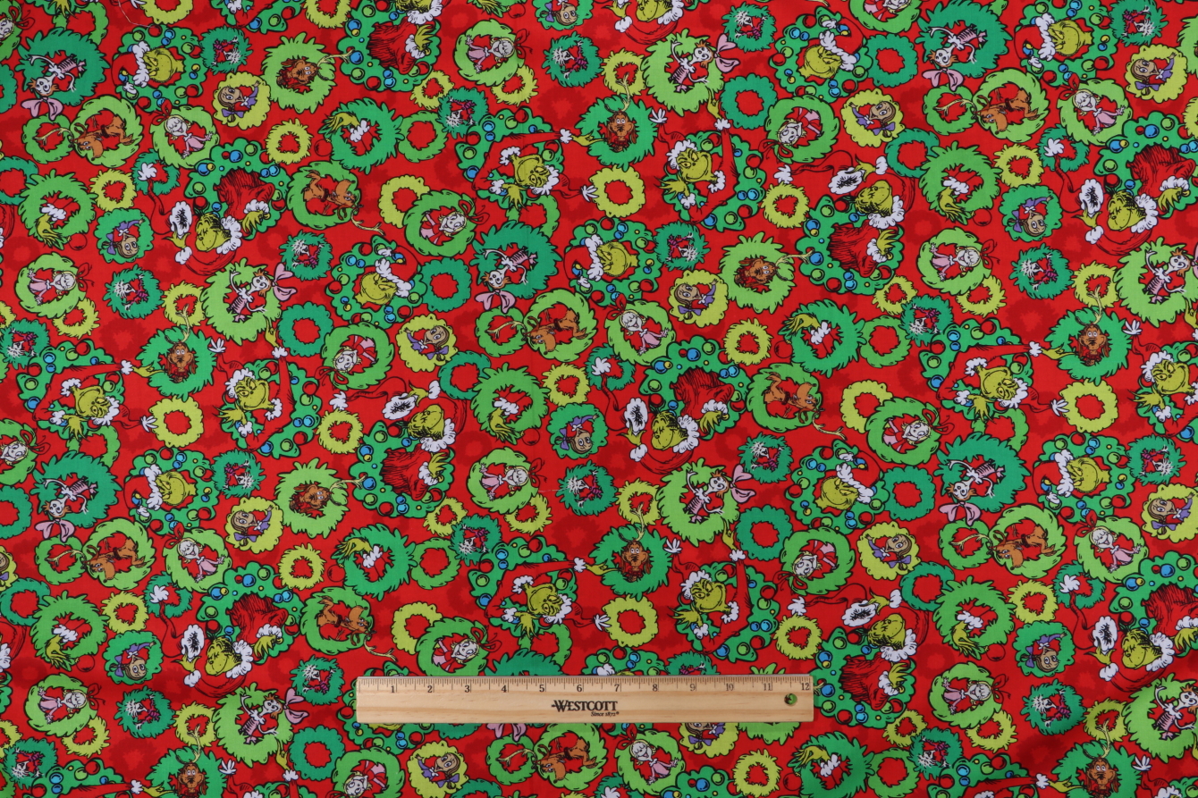 Robert Kaufman How The Grinch Stole Christmas Collection ADED-22566-223 Printed Cotton Craft Fabric in Holiday is a remnant. Fabric remnants refer to leftover pieces of fabric from production runs at manufacturing sites or pieces that remain from by the yard stock. The lengths of these remnants can vary from a few inches to several yards and are typically sold at a reduced price, since they represent remaining inventory.