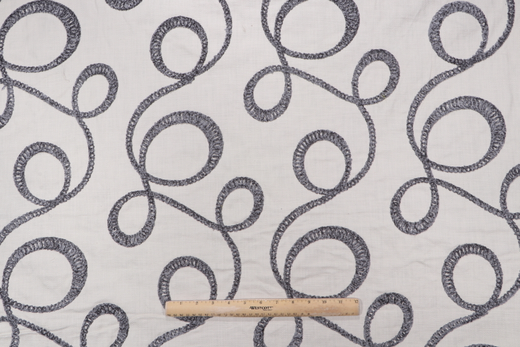 Roth & Tompkins O'Keefe Embroidered Cotton Drapery Fabric in Slate is a remnant, which is sold as a whole piece.