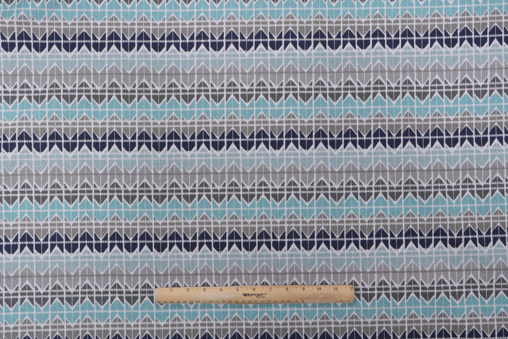14 Yards Scott Living Tessellate - Belgian Printed Cotton Linen Drapery Fabric in Cyan Details