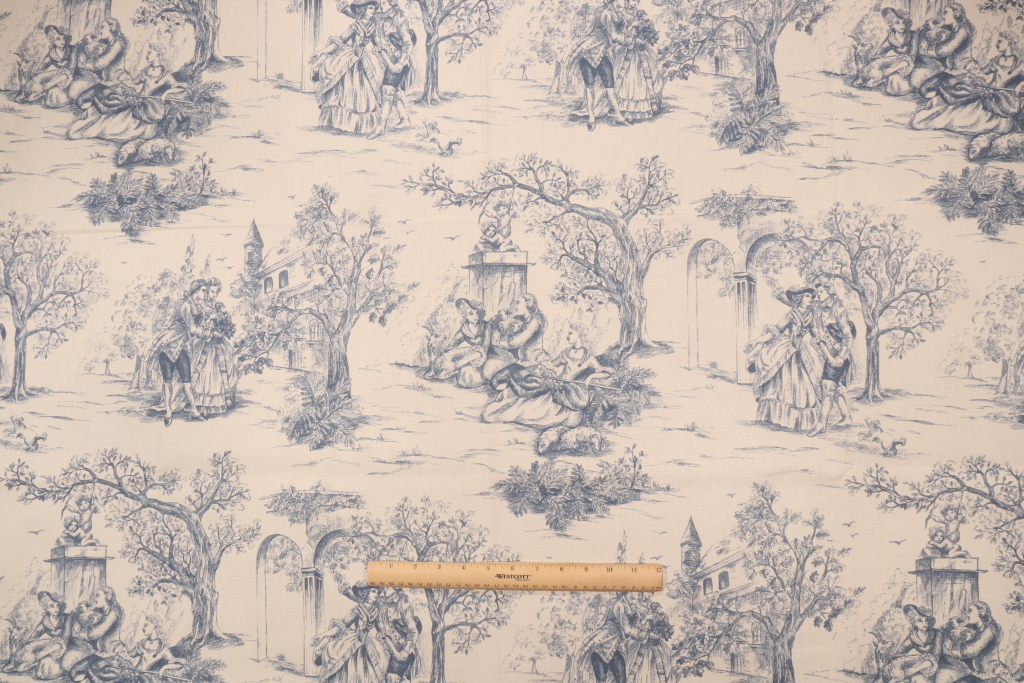 3.63 Yards Stof Fabrics Galanterie Printed Cotton Drapery Fabric in Bleu Details