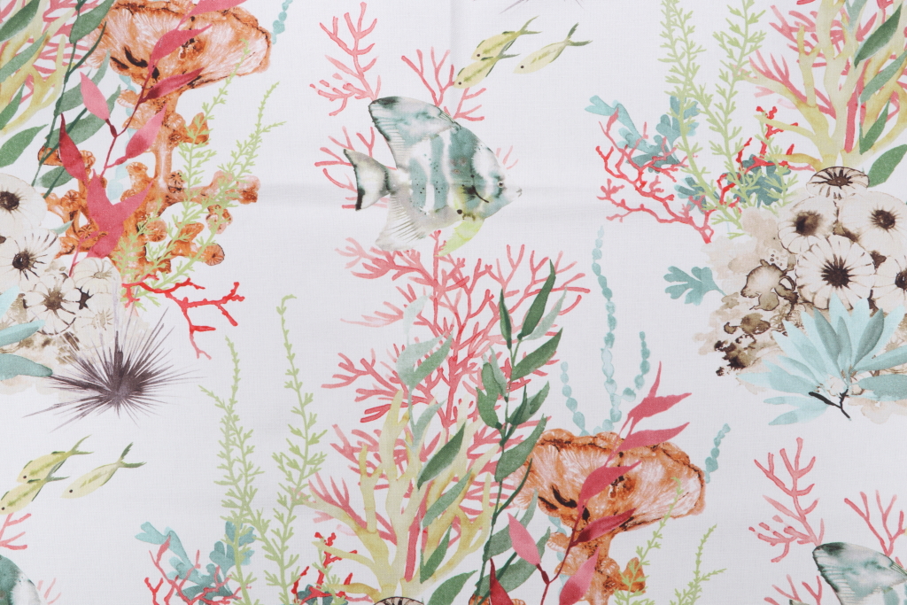Swavelle/Mill Creek Kiara-Opulence Printed Cotton Drapery Fabric in Coral Isle Details